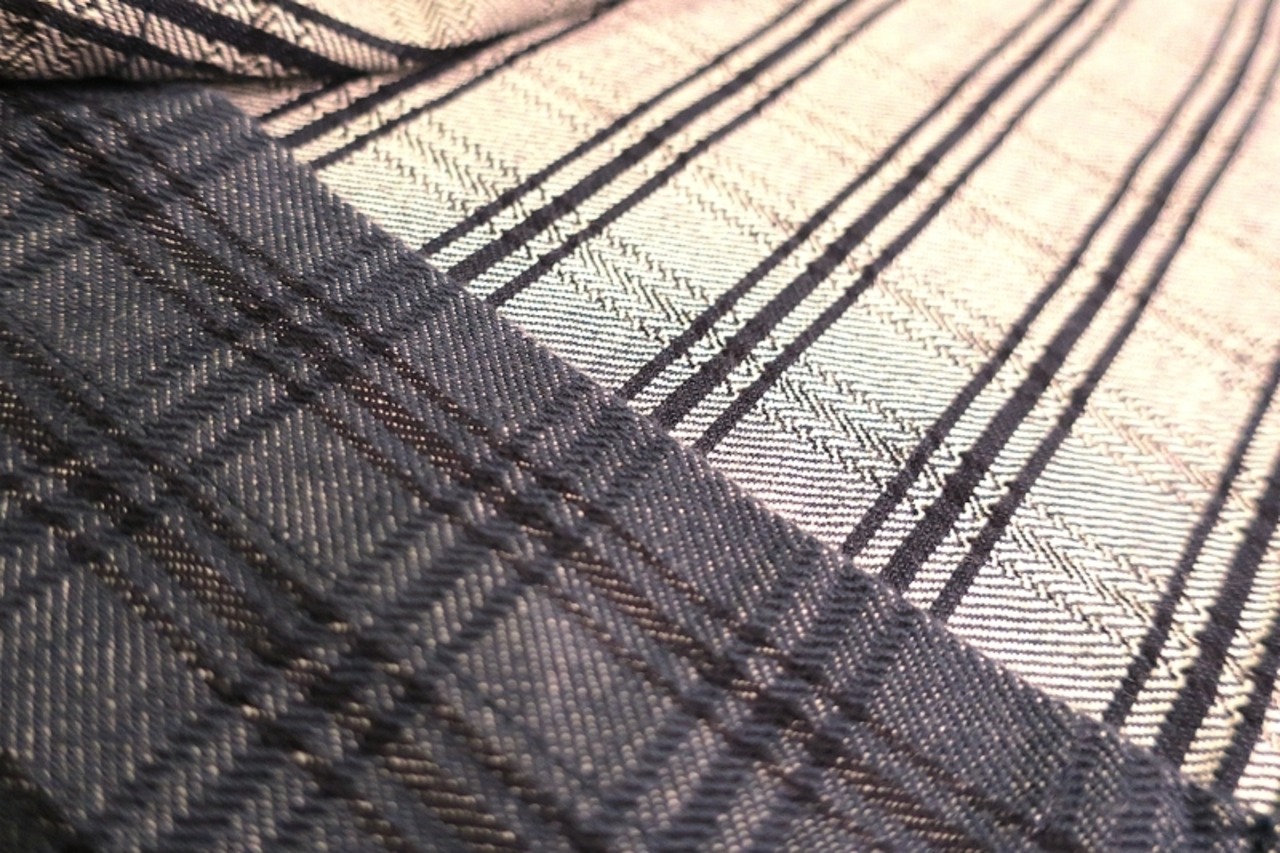 デニムのような力強い綾織をジャカード織機を用いて緻密に表現しました。