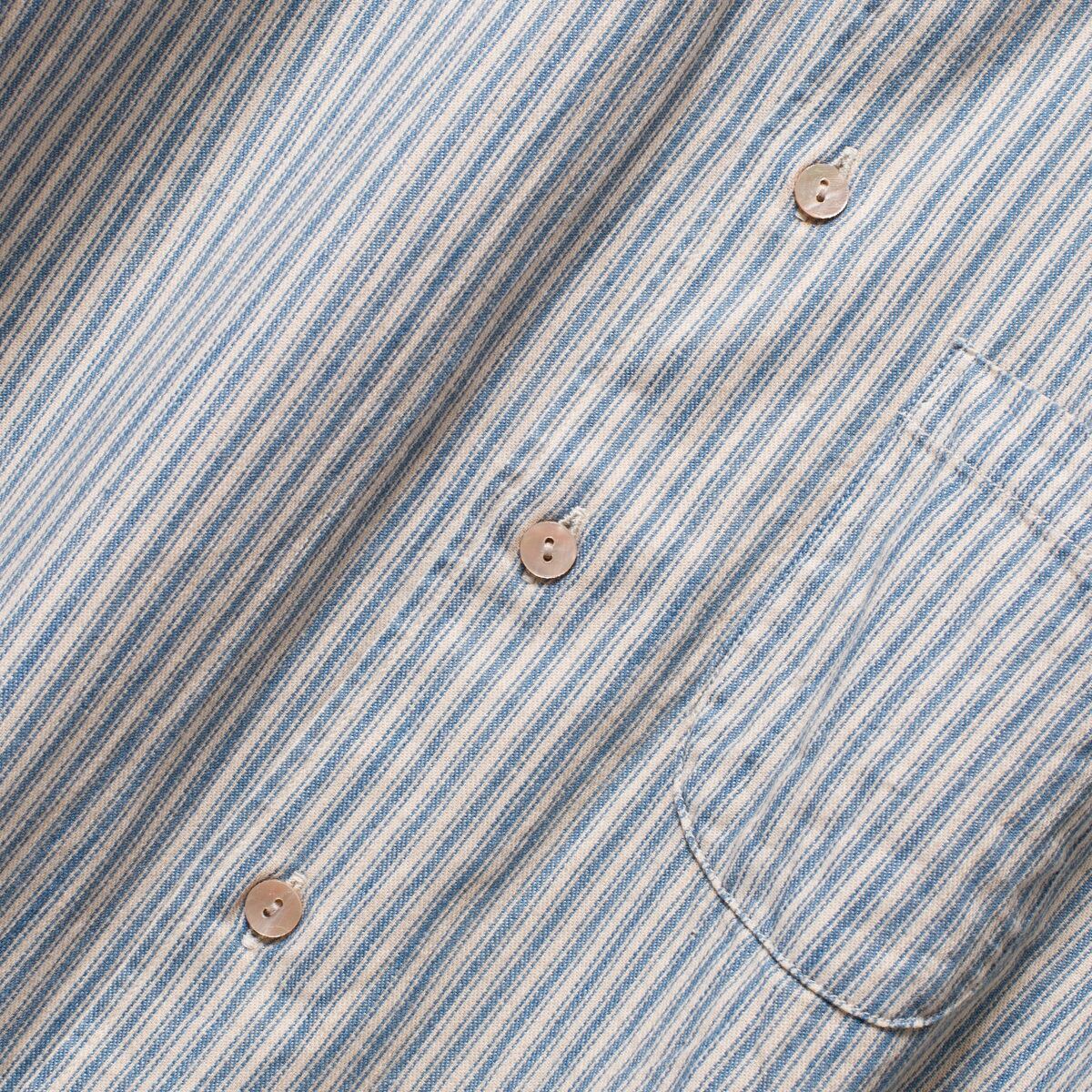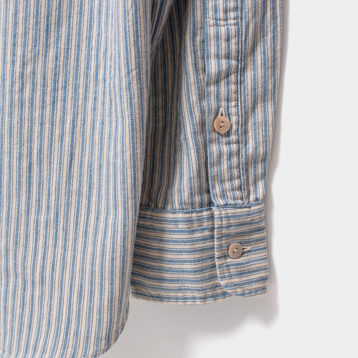 クラシカルな印象のストライプ柄はインディゴ染めした糸によるもの。